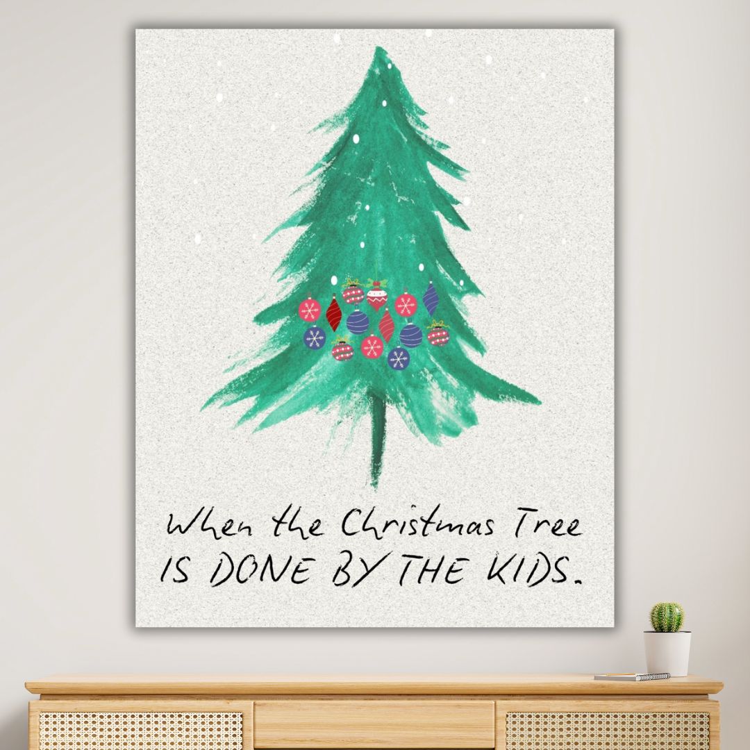This funny watercolor Christmas tree canvas print celebrates the joy (and chaos) of family decorating traditions. With the quote “When the Christmas tree is done by the kids” and a charming watercolor-style tree design, it captures the perfectly imperfect beauty that makes Christmas so special.