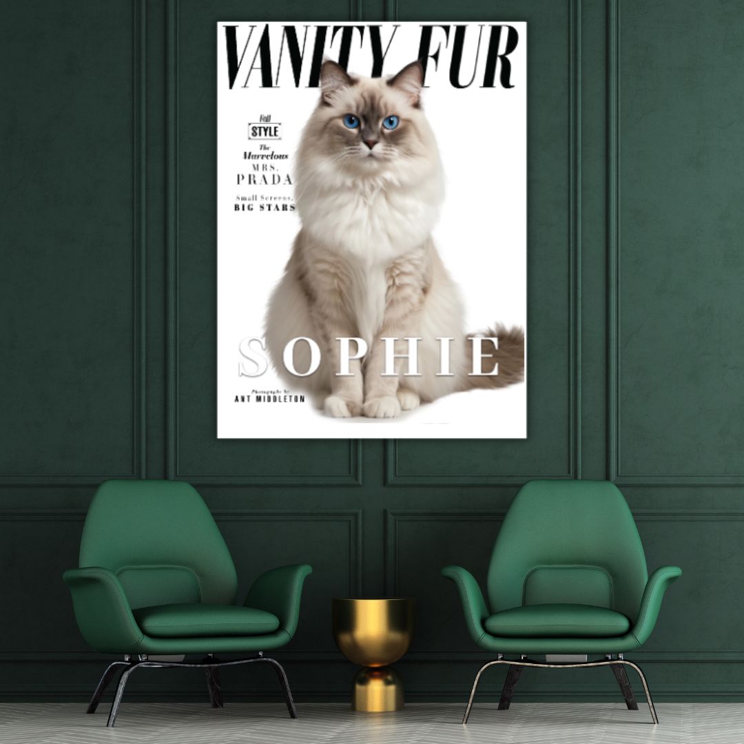 Now you can! Get a custom Vanity Fur, DQ, or GQ-style pet magazine print made from your photo. These viral-worthy prints are perfect for gifts & wall décor.